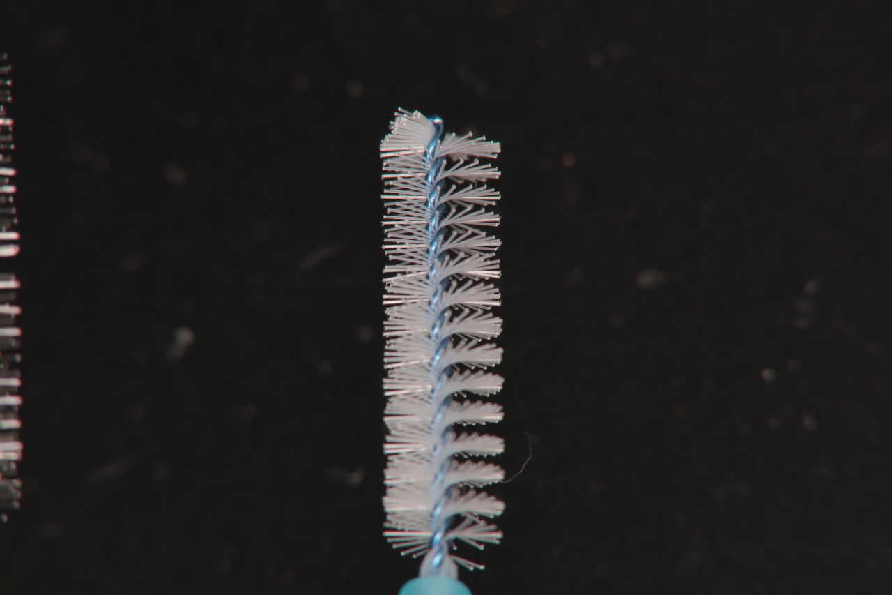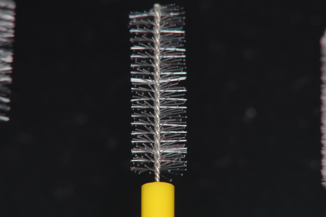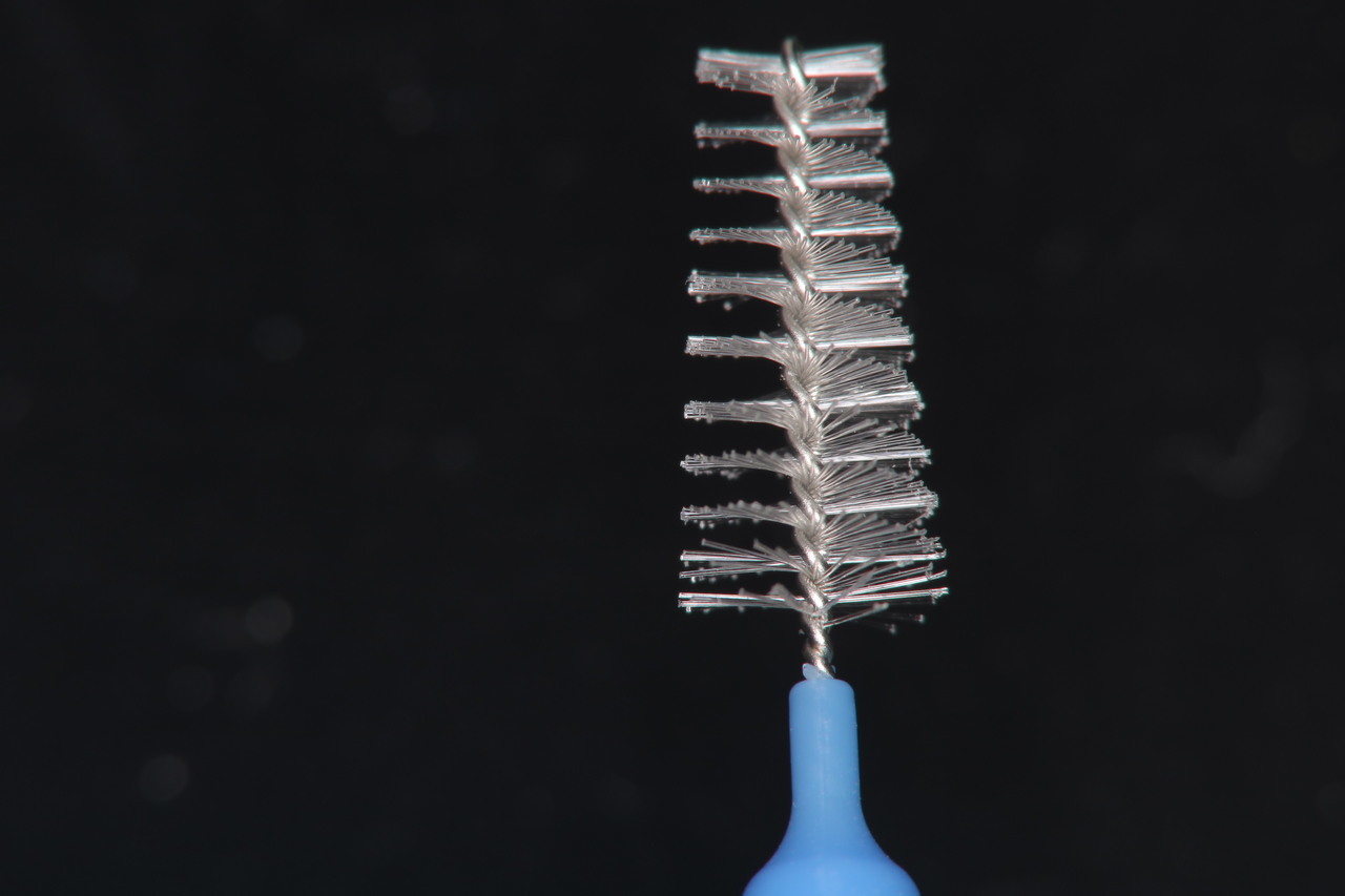 歯ブラシの毛先の形状は以前比較したように思うのですが、そういえば歯間ブラシはどうなっているのかと、拡大して撮影した画像が興味深かったので共有させていただきます。各社の研究や工夫が詰まっている形をしていると思いませんか。